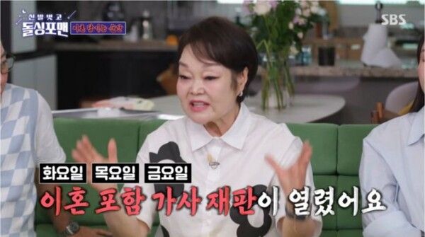 이에 이혜정은 "누구나 살다가 고비가 온다. 이혼을 꽤 고민했다"고 솔직하게 털어놓으며 한때 가정법원까지 직접 갔던 기억을 꺼냈다. 그녀는 "이혼하기로 마음먹고 가정법원에 가사 재판을 방청했다. 현실 판례를 보면서 이혼할 때 유리한 것들을 공부했다"며 무려 1년 반 동안 '실전 이혼 공부'에 매진했던 과거를 회상했다. 이혜정은 "내가 어지간한 시원찮은 변호사보다 낫다"고 자평하며 웃음을 자아냈다.
