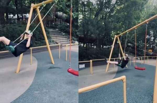 첫 게시물은 손예진이 놀이터에서 신나게 그네를 타고 있는 영상이다.