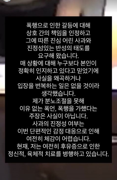 이와 관련해 은종은 "당시 상황의 일부를 영상으로 전하게 됐다. 영상의 원본은 자극성이 높아 일부 편집 및 크롭된 상태이며 그간의 폭행에 대한 분위기와 흐름 정도를 가늠할 수 있는 수준"이라고 덧붙였다.