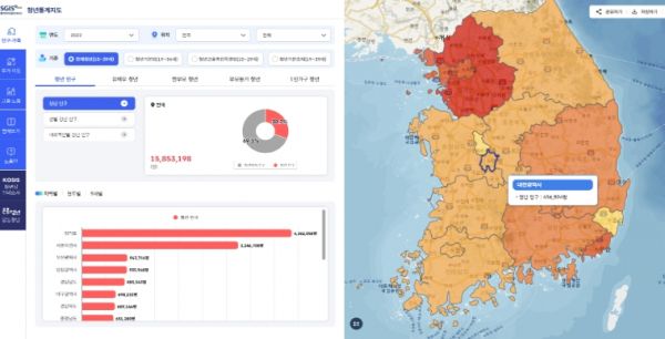 [경기연합신문 ] 통계청은 청년통계등록부를 활용하여 청년의 특성별 인구, 주거 형태, 취업 활동 등 사회·경제적 삶의 수준과 질의 변화를 시각화한 “청년통계지도”를 통계지리정보서비스(SGIS)를 통해 6월 18일부터 서비스한다.