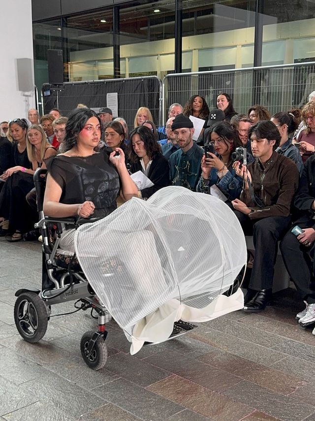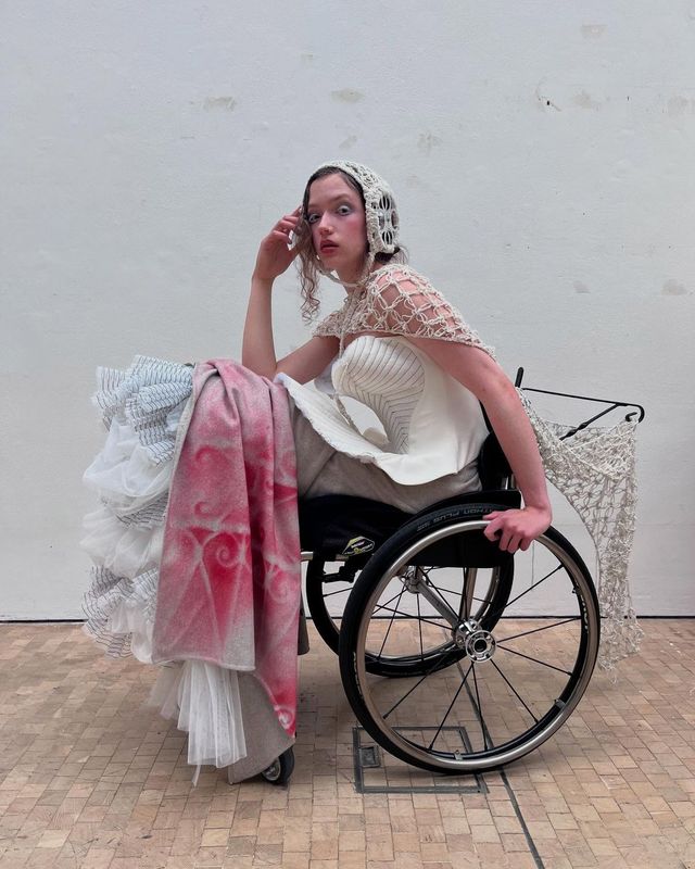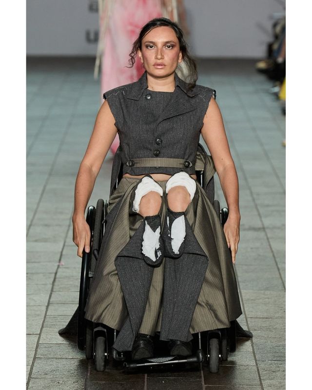 쇼에 긴 드레스를 입은 채 휠체어를 탄 모델이 등장했습니다. 한나의 컬렉션은 유전성 신경 질환을 앓는 가족을 향한 사랑에서 출발했습니다. 단단한 휠체어를 부드러운 시폰과 레이스 치마로 감쌌죠. 신체에 관한 고정관념에 새로운 관점을 제기한 한나의 쇼는 그 자체로 철학적인 행위예술이었습니다. 포용의 메시지를 넘어, 옷이 신체를 바라보는 방식을 바꿀 수 있다는 가능성을 보여준 작품이었습니다.