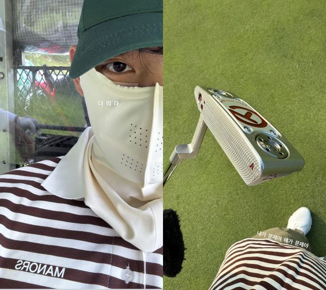 이어 또 다른 사진을 통해 뷔는 “내가 문제야. 얘가 문제야”라며 골프 필드에 나와있는 모습을 공개했다.