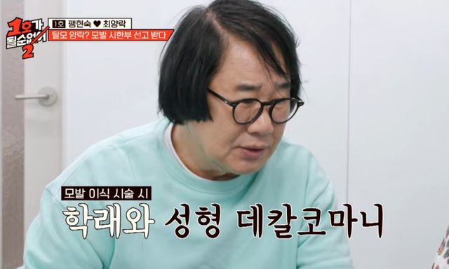 이동하면서 팽현숙은 모발 이식 성공 사례인 김학래를 언급하면서 "20살부터 봤는데 그때부터 대머리였다. 인물도 (최양락이) 훨씬 나은데, 지금 보면 학래 오빠가 역전했다. 숱이 많아졌고, 사람들은 학래 오빠가 더 어린 줄 안다. 그 말에 충격을 받았다"라고 말했다. 김학래가 최양락보다 8살이 많다.