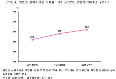 일반인 심폐소생술 시행률은 30.2%로 2023년 상반기 29.8% 대비 0.4%p 증가했다.