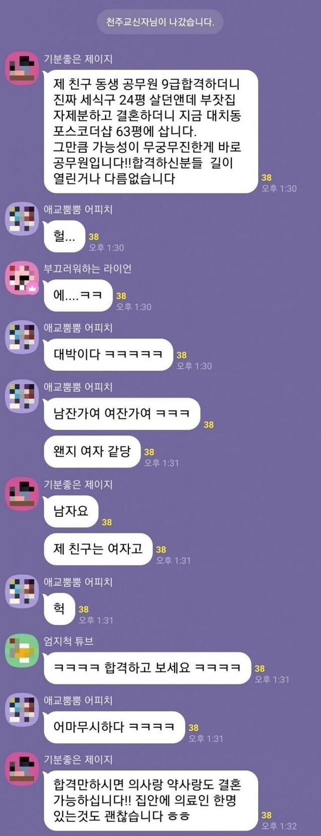 희망에 찬 9급 공무원 준비 단 톡.