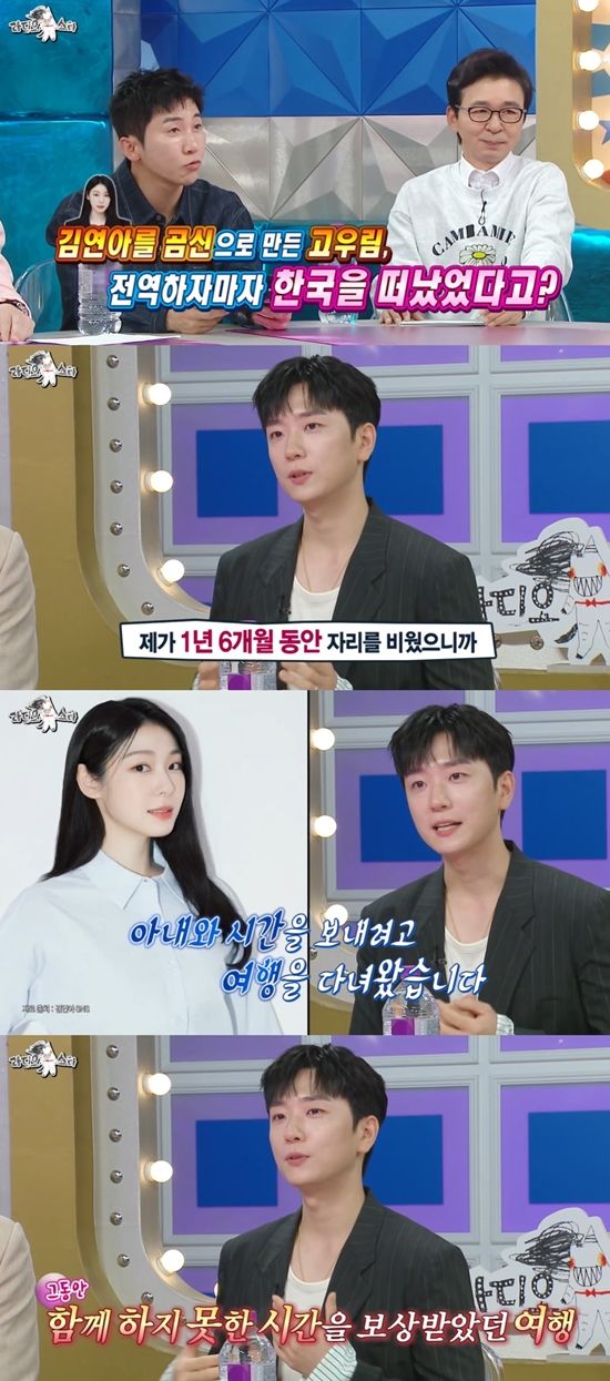 (엑스포츠뉴스 문채영 기자) 고우림이 아내 김연아를 군 복무 중 면회에 자주 부르지 않은 이유를 털어놨다.
