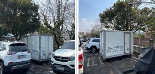 도 보건환경연구원 주차장에 세워진 교체 화물차량. 제주도 감사위원회 제공