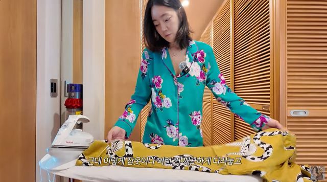 그는 "제가 다른 잠옷들도 다리는데 특히 이 잠옷은 많이 아껴서 꼼꼼하게 다리는 편이다. 근데 이렇게 잠옷이나 이런 거 꺠끗하게 다려놓고 하면 기분이 좋다"면서 "실크나 이런 것들은 다려서 입는다. 약간 이런 습관들이 모든 옷을 좀 오래 입을 수 있게 하는 것 같다"고 말했다.
