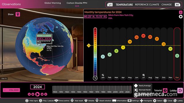 또한 2100년까지 탄소 배출 시나리오에 따른 지구 환경 변화 시뮬레이션을 통해 미래의 기후를 예측하고, 전문가가 제작한 교육 콘텐츠를 통해 기후 과학의 개념과 원리를 학습할 수 있다.