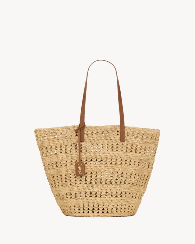 클래식한 무드를 지향한다면 생로랑(Saint Laurent)의 ‘Panier 미디엄 라피아 백’이 제격입니다. 바스켓 형태에 가죽 핸과 YSL 시그니처 장식을 더해 브랜드 특유의 모던한 럭셔리를 드러내는데요. 내부 지퍼 포켓을 포함한 실용적인 구성은 데일리 백으로도 손색없습니다.
