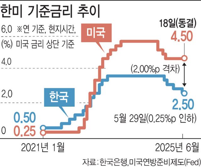 최근 부동산 문제가 통화정책의 변수로 급부상하고 있는 상황에서 한미 금리차 확대 부담까지 더해져 한은의 운신의 폭은 크게 좁아지는 모양새다. 추가 금리 인하가 수도권 부동산 시장 과열에 기름을 붓거나 외환시장 변동성 확대 등을 초래할 수 있어서다.