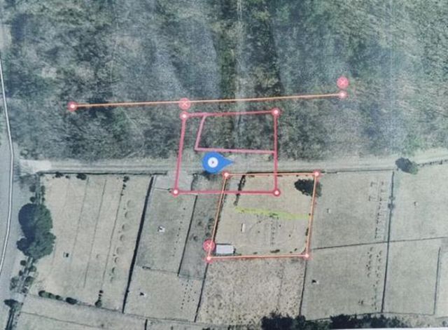 노란선은 현재 지적도상 경계선. 빨간색은 실제 측량에서 확인된 지적 경계선.