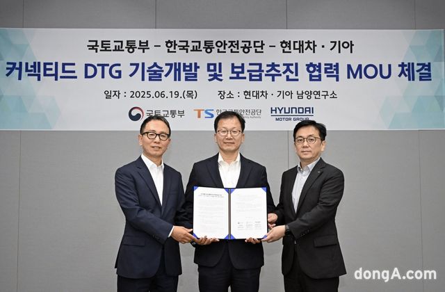 현대차·기아는 국토교통부, 한국교통안전공단과 함께 ‘커넥티드 DTG(전자식 운행기록장치, Digital Tachograph) 개발 및 보급을 위한 업무협약(MOU)’을 체결했다고 19일 밝혔다. 남양연구소에서 진행된 체결식에는 박상현 현대차·기아 상용LCM 담당 부사장을 비롯해 정채교 국토교통부 종합교통정책관, 한정헌 한국교통안전공단 모빌리티정책실장 등 주요 관계자들이 참석했다.