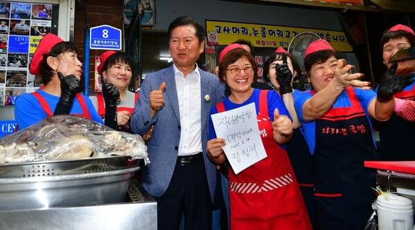시장 방문객과 상인들은 정 의원을 향해 "살이 많이 빠졌네" "또 찾아와 줘서 고맙네" 등 격려의 말을 아끼지 않았다.