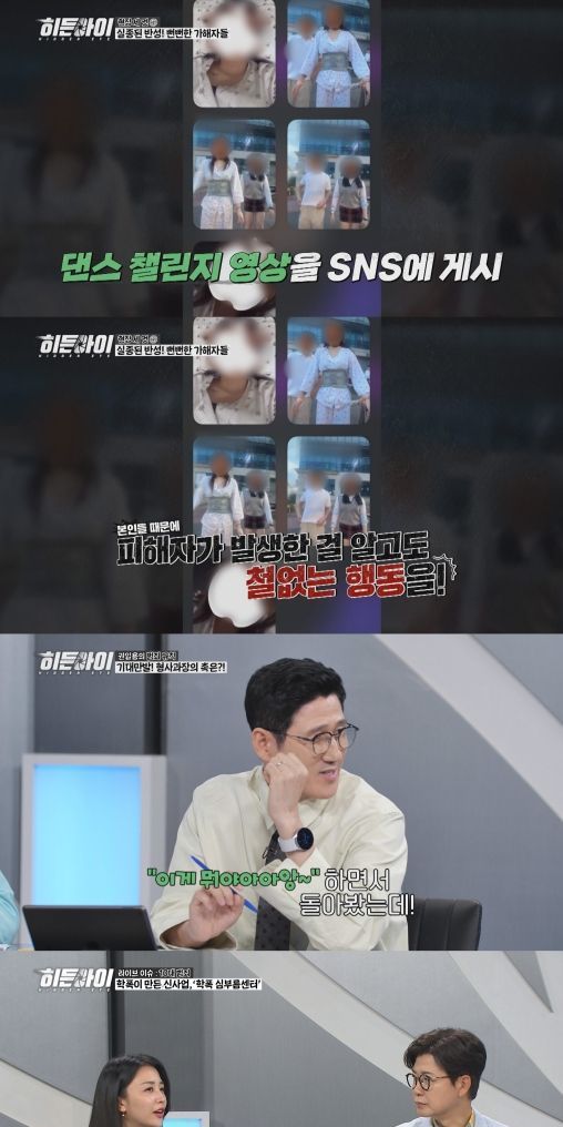 라이브 이슈에서는 죄의식을 상실한 채 점점 진화하는 10대 범죄를 집중 조명한다. 가해자는 웃으면서 동급생 뺨을 때렸고 주변에서는 이 폭행을 부추기는 듯 웃으면서 그 상황을 조롱한 반면, 피해자는 뺨을 맞으면서도 “반대쪽 때려주면 안 돼? 미안해”라며 울며 사과하는 모습에 김동현은 “피가 거꾸로 솟는다”라며 분노했다. 도를 넘은 학교폭력을 본 박하선은 무서운 선배 때문에 등굣길 변장까지 하고 다녔던 과거를 털어놓으며 학교폭력 피해자의 고통에 공감했다. 이어 프로파일러 권일용은 퇴직 후 우연히 목격한 학교폭력 현장을 해결한 경험을 떠올리며 당시 학생이 아닌 전직 경찰이었던 자신을 걱정했다는 아들의 말에 학교폭력의 심각성을 다시 한번 느꼈다고 덧붙이기도. 참혹한 학교폭력이 계속되는 가운데, 학부모들 사이에서 돈만 주면 가해 학생을 위협해 주고 피해 학생의 등하굣길에 동행해 준다는 ‘삼촌 패키지’, 학폭 증거를 촬영해 주는 ‘증거 확보 패키지’ 등을 홍보하는 학폭 심부름센터까지 등장. 학부모들 사이 해결사처럼 자리 잡은 불법 심부름센터가 유행처럼 번지고 있는 현실과 학교폭력 해결 방안에 대해서 3COPS의 날카로운 시선으로 분석해 본 이번 방송은 6월 23일 (월) 오후 7시 40분 MBC에브리원 '히든아이'에서 확인할 수 있다.