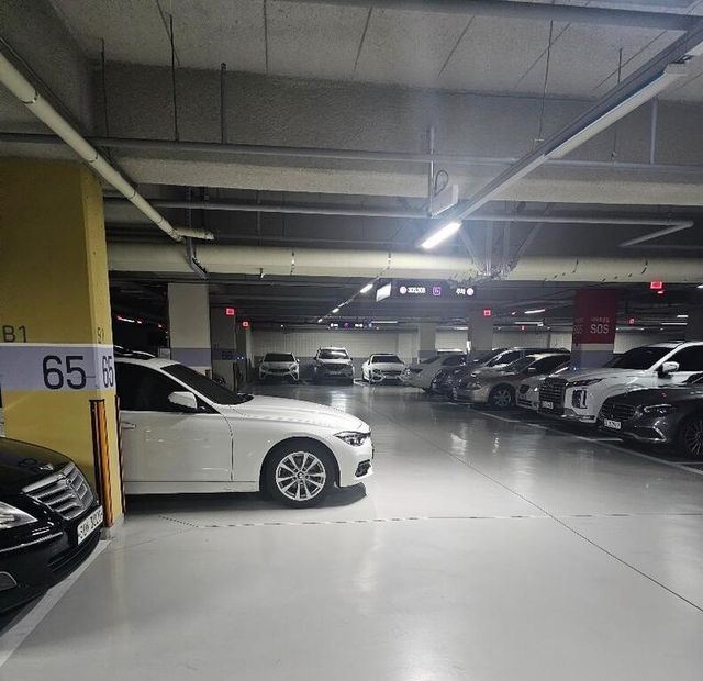 문자 대화 내용과 함께 A씨는 주차장 사진을 공유했다. 해당 사진에는 흰색 차량이 주차 자리가 아닌, 코너 기둥 옆에 차도를 반쯤 막은 채로 주차돼있었다.