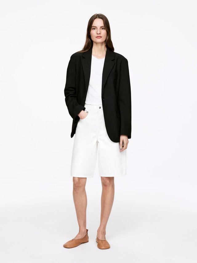 먼저, 흰 반바지를 미니멀한 블랙 티셔츠와 매치하면 가장 단정하면서도 도회적인 룩이 완성되죠. 패션 인플루언서 포피 알몬드처럼 슈즈로 포인트를 더해주면 정제된 가운데 자유분방한 여름 룩을 연출할 수 있고요.