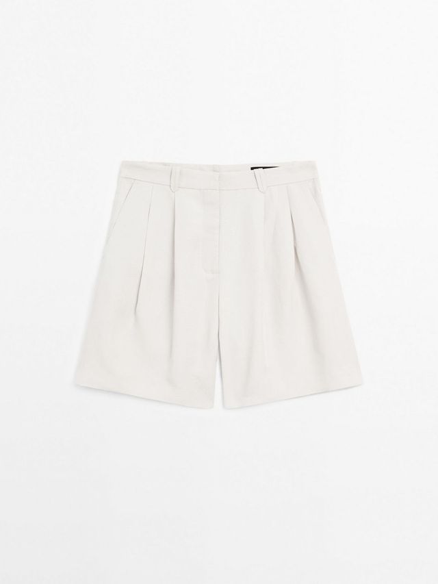 무릎 길이의 가장 베이직한 버뮤다 팬츠. 하이 웨이스트 디자인이라 허리 라인을 잡아주고 다리가 길어 보이는 효과가 있습니다.