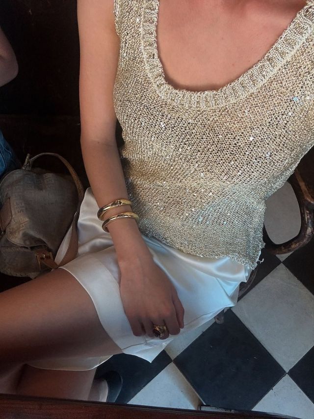 뻔한 면 소재에서 벗어나 실키한 질감의 화이트 버뮤다 반바지를 선택하면 세련된 오피스 룩을 연출할 수도 있습니다. 아이돌처럼 벌키하고 뻣뻣한 데님 버뮤다를 착용했을 때와는 완전히 다른 느낌이죠?
