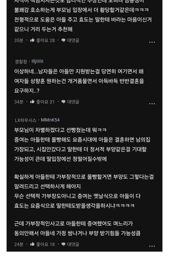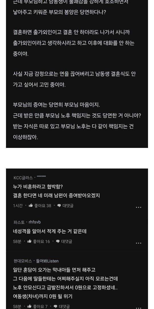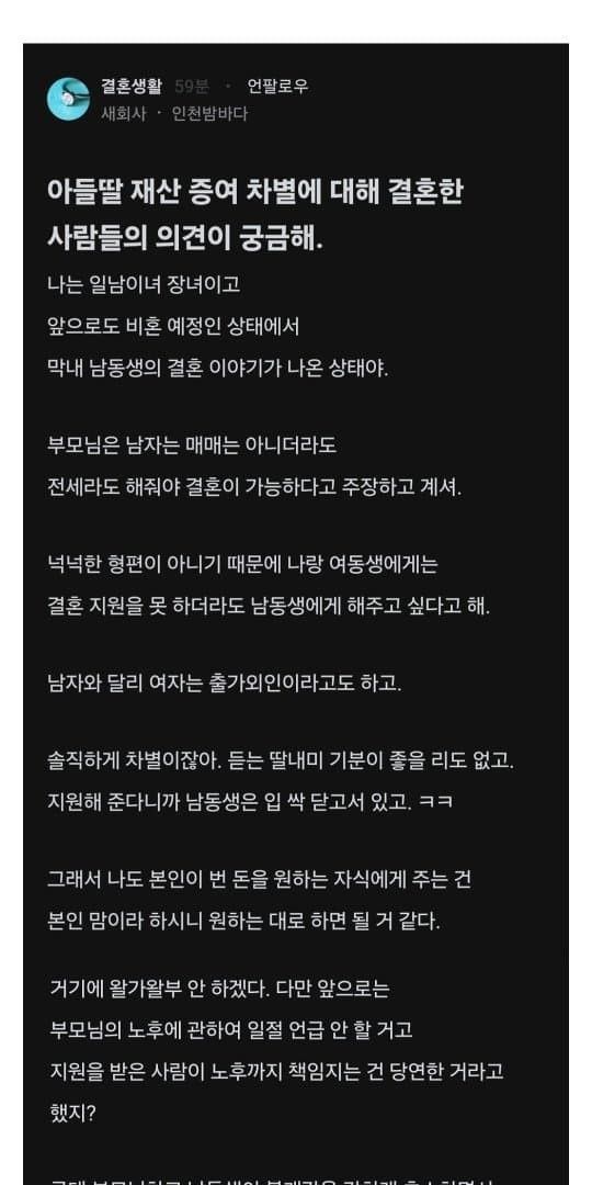 재산은 남동생한테만 주고 부양은 똑같이 하래