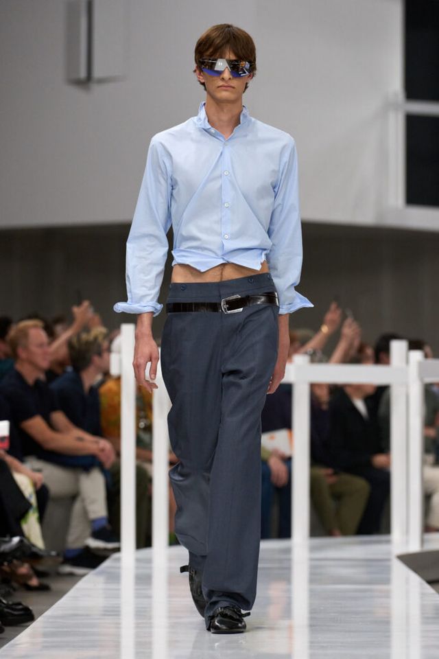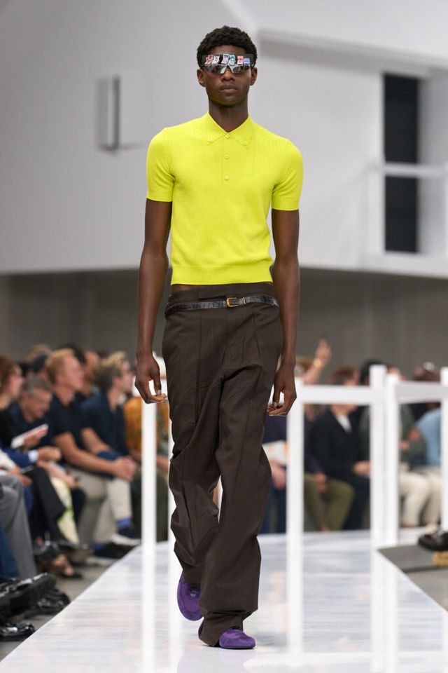 NOTE 본능적이고 단순한 시선으로 패션에 접근한 디자이너들의 변치 않는 젊음과 낙관주의를 반영한 새 시즌 프라다 컬렉션의 테마는 ‘클로저(Closer)’. 가까이 보았을 때 더욱 그 진가를 발휘하는 룩들은 자유로이 구겨지는 셔츠 칼라, 의도적으로 힘껏 구긴 듯한 옷 전면의 주름, 유쾌한 트롱프뢰유 기법으로 독특하면서도 근사한 스타일을 완성했다. 정갈한 니트와 수트, 팬츠도 두 천재의 감각이 닿으면 이토록 놀라운 결과물로 탄생한다.