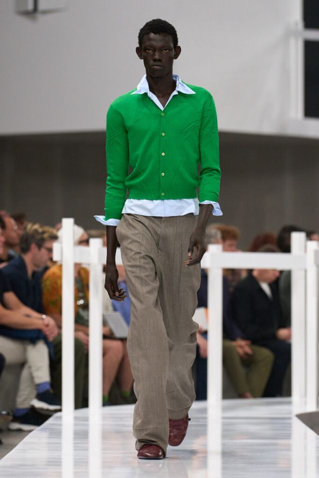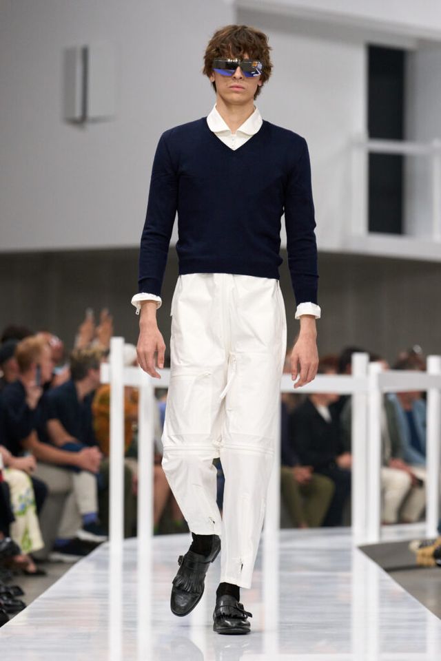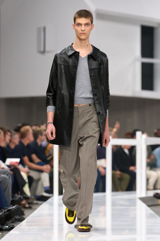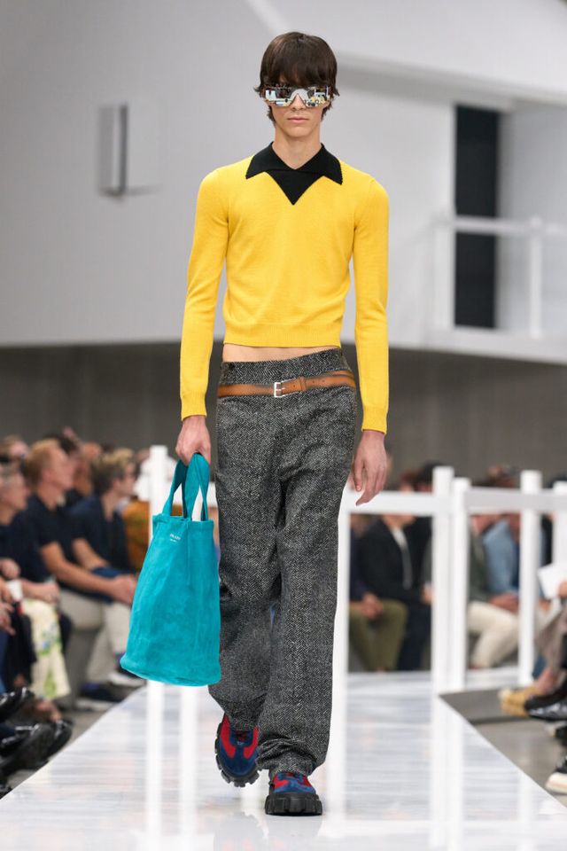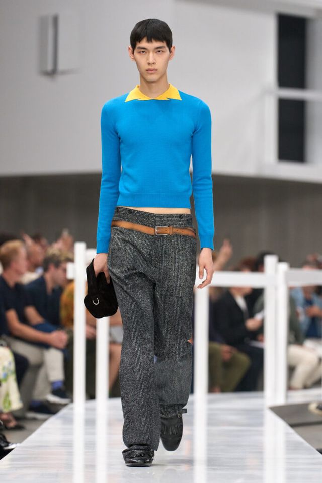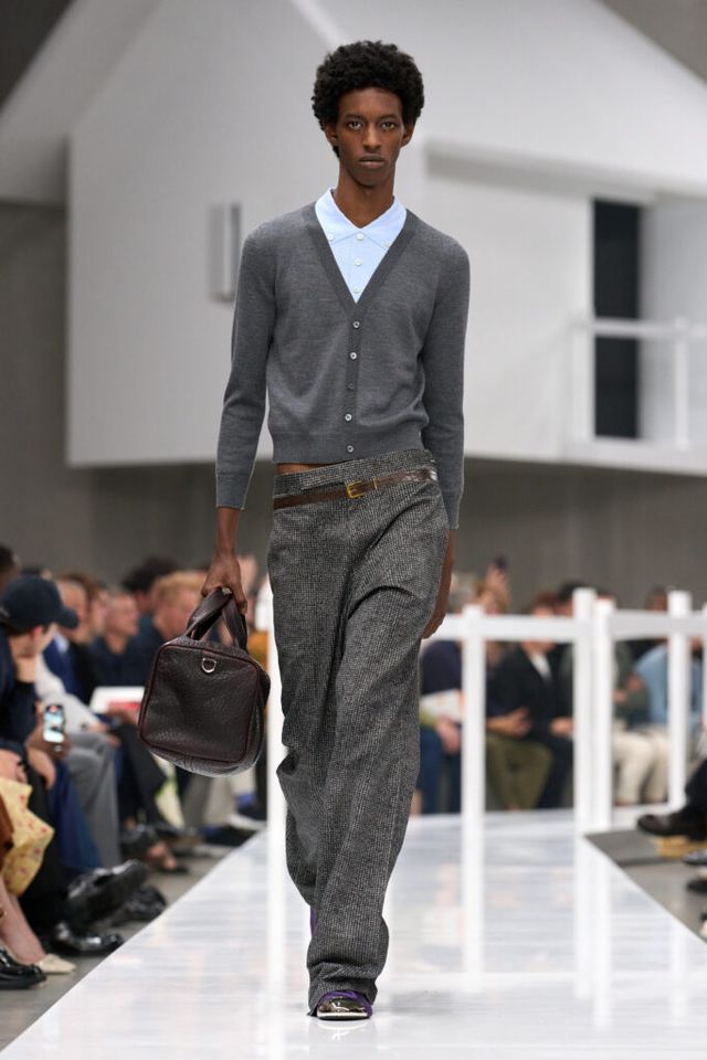 FAVORITE LOOK 두말할 필요 없이 프라다 그 자체인, 그래서 놀랍도록 아름다운 브이넥 니트 스웨터와 그레이 팬츠를 매치한 오프닝 룩