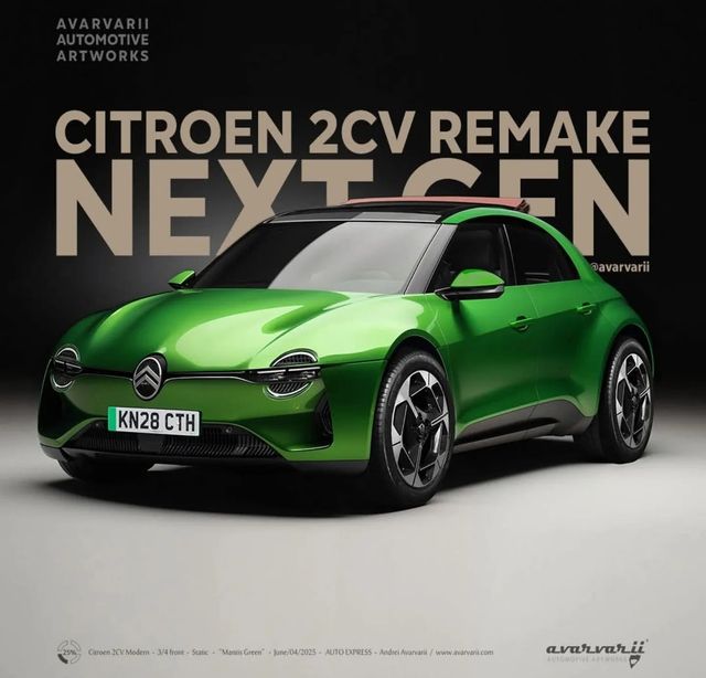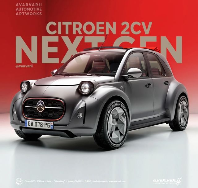 실제 오토 익스프레스는 복고 전기차 콘셉트를 구체화하기 위해 렌더링 디자이너 안드레이 아바르바리에게 ‘차세대 2CV’의 이미지를 의뢰했다. 공개된 렌더링은 전통적인 2CV의 상징적 디자인을 현대적으로 재해석한 형태로, 유선형 전면부와 간결한 차체 구성, 전기차 특유의 매끄러운 라인이 특징이다. 고유의 정체성을 유지하면서도 공기역학과 실용성을 모두 고려한 설계로 평가된다.