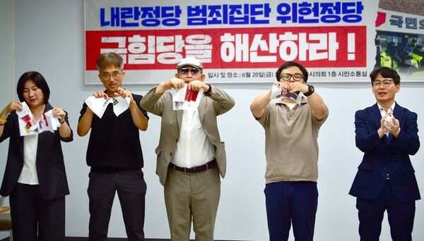 뉴시스 보도에 따르면, 광주·전남 시민사회 단체로 구성된 광주전남촛불행동은 이날 오후 광주 서구 광주시의회 시민소통실에서 기자회견을 열어 "내란 수괴를 옹호·비호한 것도 모자라 내란이 정당하다고 주장한 국민의힘은 위헌 정당"이라고 밝혔다.