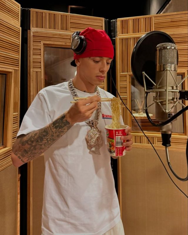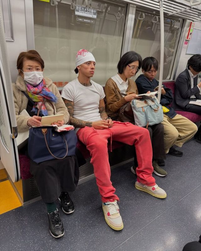 또한 그는 머리에 딱 붙는 얇은 스컬캡도 자주 착용하는데요. 이는 스트리트 감성을 유지하면서도 귀엽고 위트 있는 분위기를 더해 줍니다.