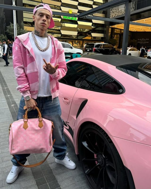 특히 그는 핑크 컬러를 즐겨 입는데요. 트랙수트 핑크 셋업, 후디, 모자, 백까지도 사랑스러운 핑크로 통일해 확실한 포인트를 주죠.