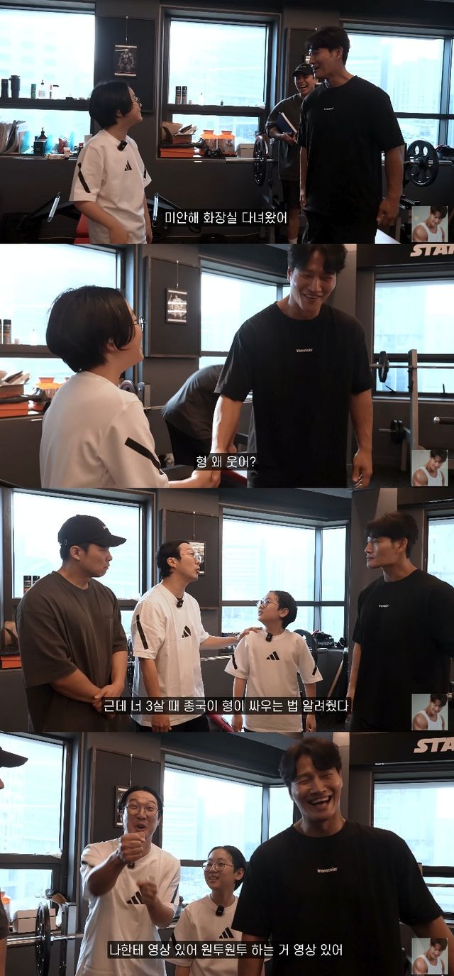 이어 하하는 "너 3살 때 종국이 형이 싸우는 법 알려줬다"면서 "나한테 영상 있다. 원투원투 하는 거 영상 있다"라고 과거 에피소드를 공개했고, 이에 김종국은 "친구들하고 싸우고 그러면 안 되고 늘 사이좋게 지내야 된다"고 말했다.