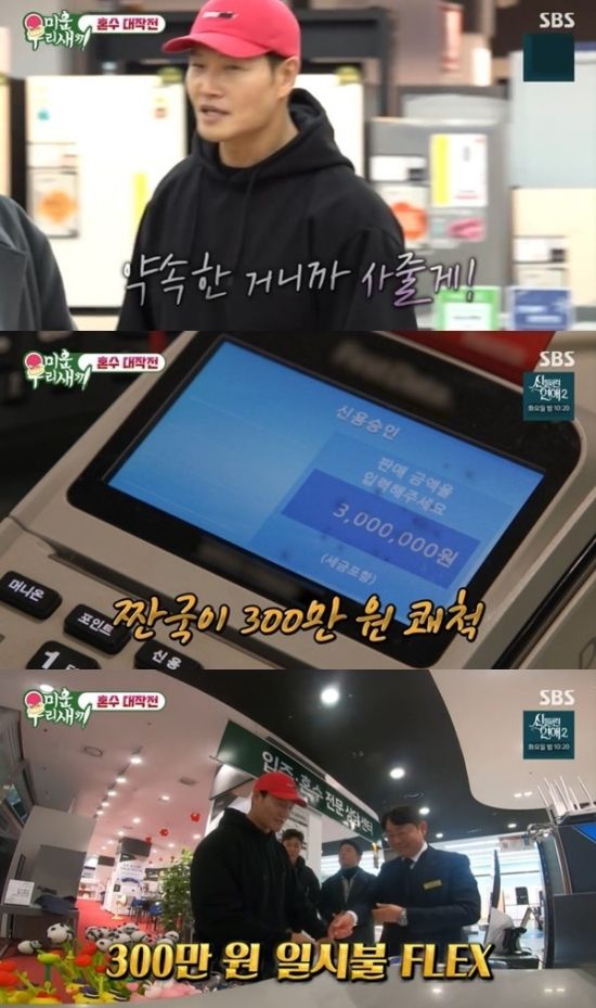 지난 2월, 연달아 결혼을 앞둔 김종민과 김준호를 위해 SBS '미운 우 새끼'에서는 두 사람의 혼수를 걸고 인간 컬링을 진행했다. 이날 김종국은 휴지가 당첨된 김준호와 다르게 김종민에게는 냉장고를 사줘야 하는 위기(?)에 처했다.