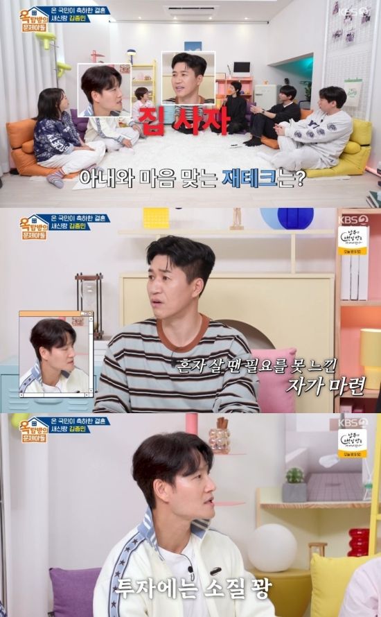 19일 방송된 KBS 2TV '옥탑방의 문제아들'에는 지난 4월 결혼한 새 신랑 김종민이 게스트로 출연했다.