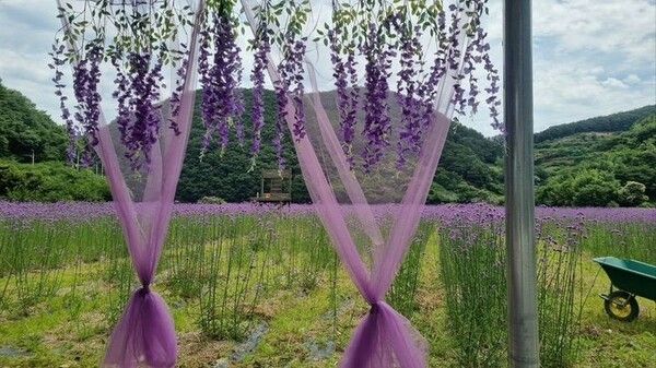 마을 입구부터 이어지는 보랏빛 꽃길은 주변 산세와 어우러져 한적한 자연 속 힐링 공간으로 주목받고 있으며, 특히 지난 20일 새롭게 조성된 포토존에서는 꽃밭을 배경으로 인생 사진을 남기려는 방문객들의 발길이 이어지고 있다.