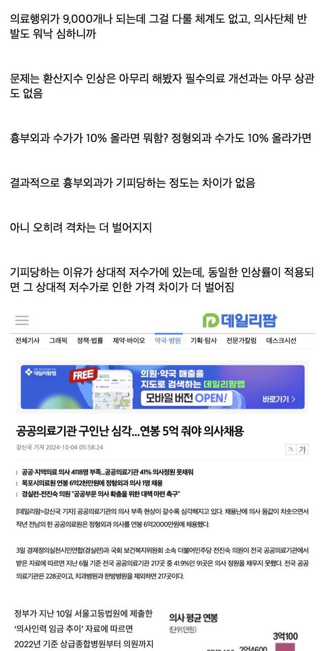 저걸 개선하지 못하면 아무리 필수과 수가를 올려도 의주빈들 배때지 불리리는 곳에만 국민 혈세 들어감