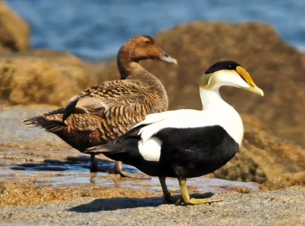 아이더오리(참솜깃오리, Common Eider)는 털값이 아주 비싸기로 유명하다.