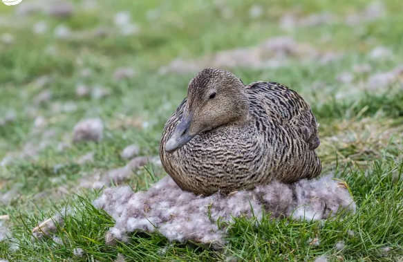 암컷은 자신의 가슴 솜털을 뽑아 둥지에 깔아 보온성을 높이는데 바로 이 솜털이 굉장히 따뜻하고 가볍기로 유명하다.