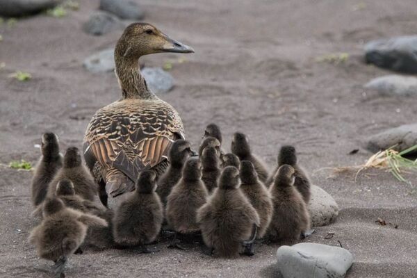 (알을 품고 있는 암컷 아이더 오리)
