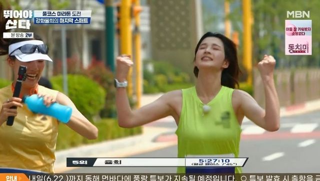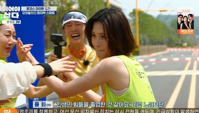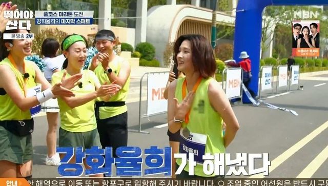 율희는 5위로 풀코스를 완주했다. 율희는 “‘인생의 힘듦을 졸업한 것 같다’는 느낌보다는 행복을 어떻게 느끼는지 아는 법을 배운 것 같다”라고 소감을 밝혔다. 6시간 이내 완주한 5명은 배지 2개를 확보했다.