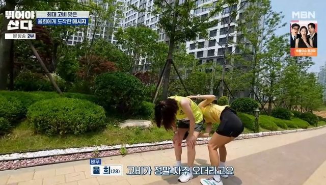 율희에게도 고비가 찾아왔다. 율희는 “첫 고비를 넘는데, 고비가 정말 자주 오더라”며 통증을 토로했다. 그런 율희 앞에 나타난 건 가족들의 응원 메시지였다. 율희 어머니와 율희 동생은 “우리가 응원할 거야. 넌 잘할 수 있어”라고 밝혔다. 율희 동생은 “여태 누나 뛰는 거 봤는데, 누난 할 수 있어. 내가 응원할게”라고 응원했다. 깜짝 영상에 율희는 울컥한 모습을 보였다.