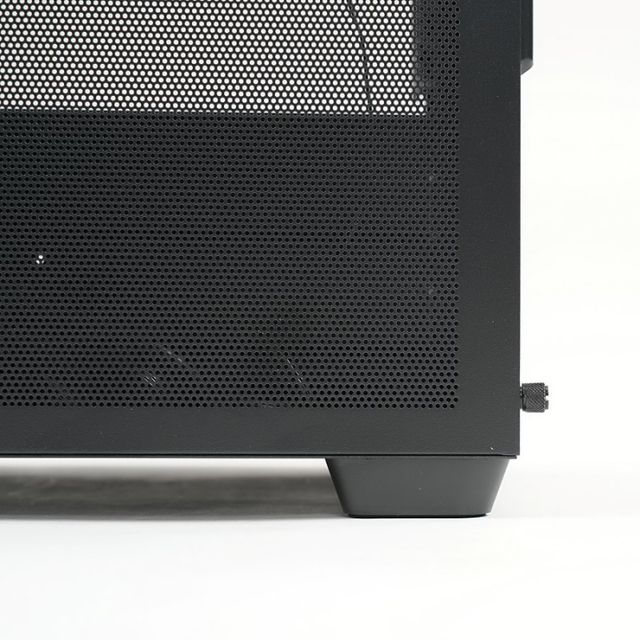 우측 패널에도 에어홀이 타공된 것을 확인할 수 있다. 위치가 재미있는데, 눈썰미가 좋은 사용자라면 듀얼 챔버 구조의 케이스에서 파워 서플라이가 장착되는 위치라는 것을 손쉽게 유추할 수 있다. 파워 서플라이의 흡기가 이루어지는 위치에 이를 위한 에어홀을 준비해 두었다.