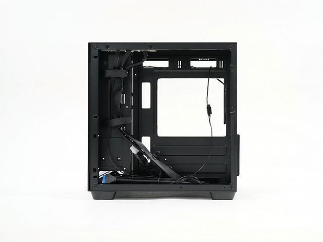 UD20M 역시 조립 공간이 협소한 m-ATX 케이스가 갖는 조립의 어려움을 해소하기 위해 나름의 대비를 해 둔 것을 볼 수 있다. 우측 챔버에서 좌측으로 분기되는 각종 케이블을 위해 상당히 넉넉한 크기와 숫자의 정리홀을 배치했다. 작은 케이스일수록 조립 시 이 홀의 편리함을 느낄 수 있다.