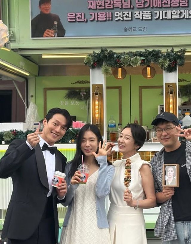 사진에는 간식차 앞에서 포즈를 취한 남기애의 모습이 담겼다. 간식차에는 ‘재현 감독님, 남기애 선생님, 은진, 기용!! 멋진 작품 기대할게요!’라는 문구가 적혀있다. 남기애는 송혜교의 사진 앞에서 하트 포즈를 취하며 고마움을 전하고 있다. 또 다른 사진에는 송혜교와 함께 다정하게 포즈를 취한 과거 모습이 담겼다.