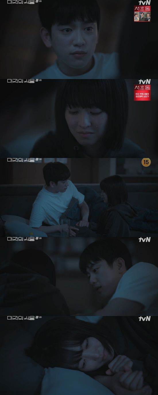 21일 방송된 tvN 토일드라마 '미지의 서울' 9회에서는 이호수(박진영 분)가 유미지(박보영)를 위로하는 모습이 그려졌다.