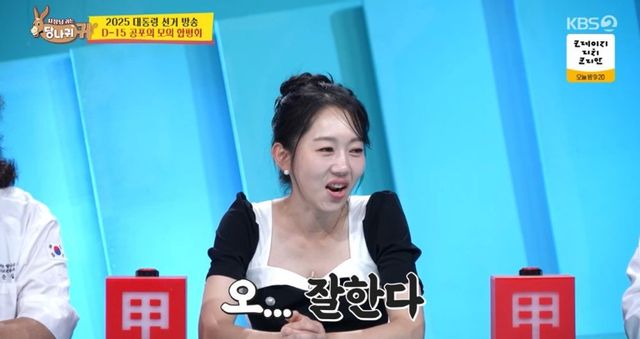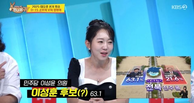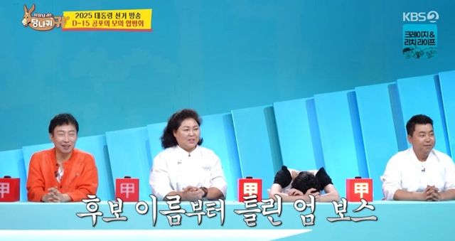 이날 ‘사당귀’ 버전의 대선 모의 방송이 펼쳐진 가운데 엄지인은 호기롭게 중계에 나선 것과 달리 후보 이름을 틀리는 실수를 저지르며 야유를 샀다.