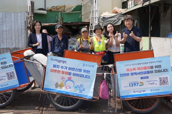 뉴시스 보도에 따르면, 서금원과 우리은행은 다음 달부터 6개월간 저신용·저소득 서민을 위한 정책서민금융 지원 내용을 담은 광고를 '끌림 리어카'에 게재한다고 22일 밝혔다. 광고비 일부가 폐지 수거 어르신들의 생계비로 지원되며, 형광 안전조끼, 쿨토시 등 물품 후원도 이뤄진다.