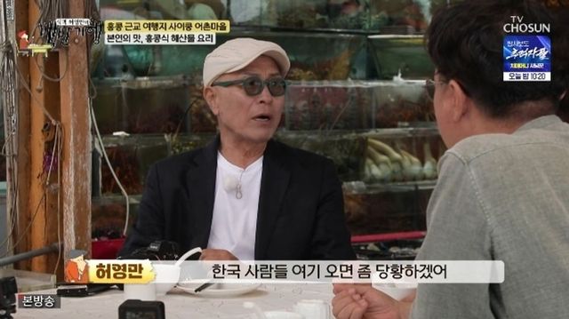 이날 방송에선 홍콩의 독특한 식당 문화도 화제가 됐다. 해산물 레스토랑을 방문한 허영만은 보이차를 주문한 뒤 “지금 보이차를 시켰잖나. 그것도 돈이냐”고 물었다. 그러자 화교 출신으로 중화권 생활 경험이 풍부한 여경래는 “원래 이런 세팅도 돈”이라고 했다. 홍콩에선 한국과 달리 차, 소스, 물수건, 식기 등 테이블 세팅 비용이 별도로 청구된다는 것.