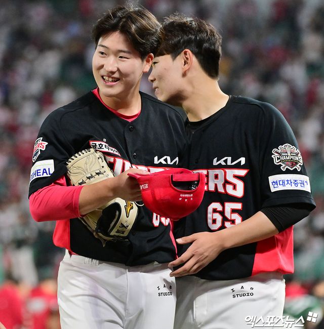 이어 "초구 스트라이크를 던진 뒤 잡을 수 있겠다는 생각이 들었다"며 "(안)현민이 형이 최근 뜨거운 타자이기도 하고, 또 같은 학교(개성중) 출신인데, 현민이 형을 잡은 뒤 마음이 편해져서 더 자신 있게 들어간 것 같다"고 덧붙였다.