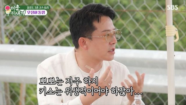 김준호는 “여자들은 갑자기 하는 거 싫어하거든. 뽀뽀는 자주 하는데, 키스는 위생적인 것도 있어야 하지 않냐”라면서 김희철 얘기를 꺼냈다. 김준호는 “희철이는 분위기가 좋아서 키스하려고 해도 ‘이 닦고 오자’고 한다더라. 이해가 안 간다”라고 밝혔다.