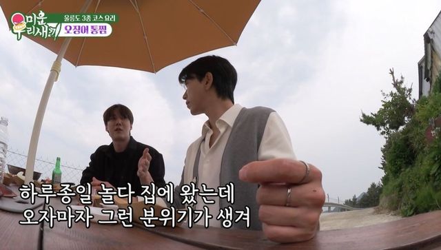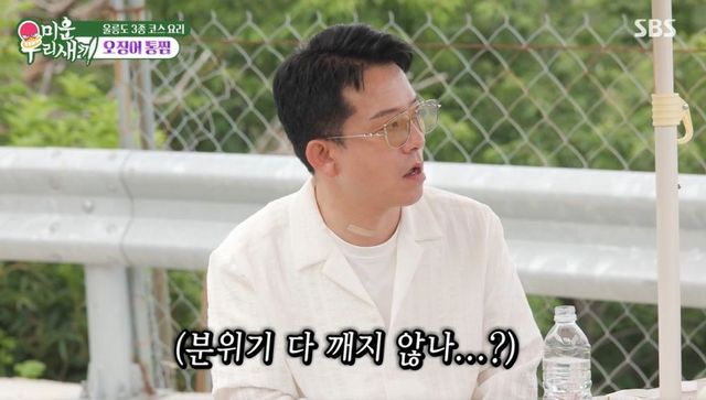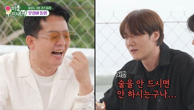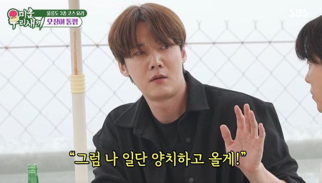 이후 오징어 먹물 라면이 도착했다. 최진혁이 오징어를 잘라주자 김준호가 “섬세하네. 이렇게 섬세한데 여자친구가”라고 말하던 그때 최진혁은 윤혁민 옷에 먹물을 튀게 했다. 이에 김준호는 “안 하던 짓을 해. 왜 잘라줘”라고 타박했다.